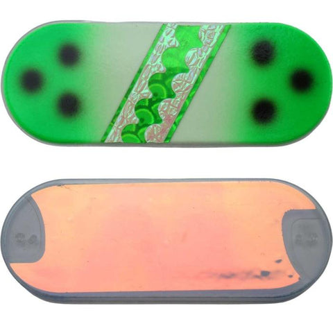 A Moonshine Lures Flasher Insert is a patent-pending flexible, strong, and interchangeable inlay painted with the company's own glow paint for use with Moonshine Flashers. Created to answer angler requests for customization options, you can now match what finicky salmon or trout are looking for that day. All that you have to do to switch out colors is to rotate the washer tabs, remove the Flasher Insert, and then pop in a new one. Available in multiple colors, the Insert Flasher's glow paint also shows through the non-painted side to increase its fish-attracting ability for the ultimate in customization. All inserts include Moonshine Lures' RV Stickers on the backs. Easy to change on the fly, you'll be ready to give fish what they're looking for when you have several colors (or all) of this Moonshine Lures Flasher Insert!